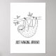 This black and white funny animal poster features a cartoon sloth with the phrase “Just hanging around” in bold line style. Perfect for offices, dorms, or quirky decor. Comes in various sizes and finishes.