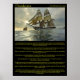 O cheio Desiderata de Max Ehrmann: Vá placidamente entre o barulho e a pressa... Apresentando um barco de vela no oceano com grandes ondas e outros barcos no fundo do chão. com um fundo preto.