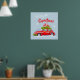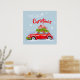 Posters de Feliz Natal, com uma bela ilustração de um carro festivamente decorado com galhos de abeto e caixas com presentes no telhado.