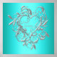 Elegante coração azul-prateado doce, dezesseis poster de festa de aniversário.