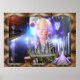 A impressão da Galáxia é uma menina fictícia voando em um universo da abstrato, olhando para você com seus grandes olhos. O universo está cheio de coisas como árvores em uma base terrestre. uma estrada urbana indo para uma cidade em outra base terrestre. Tudo isso está flutuando no espaço. Este poster tem uma estrutura marrom-abstrato.