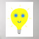 A pintura de uma lâmpada amarela, com olhos azuis e um sorriso de seta adicionado, é impressa em posters de parede. Você pode escolher seu tamanho e tipo de papel.