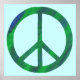 A pintura de um sinal de paz em misturas de azul e verde, por Cheryl Paton, é impressa em posters personalizados. A cor de fundo pode ser personalizada.