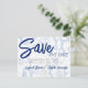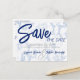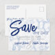 Mande o anúncio "Salve a data" para o seu casamento com um design azul suave. Personalize o texto frontal e traseiro nos campos modelo, remova o texto ou edite usando a ferramenta design para selecionar um estilo de tipo, tamanho e cor preferidos.
