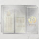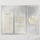 Instrutor de Meditação Yoga Studio / Treinador de Vida / Healer / Mestre Reiki / Modelo de Brochuras Triplas com Terapia Massagista - de Imagem Faux Gold Foil Yoga Meditação Easy Pose / Sukhasana Pose com Símbolo ZEN no Símbolo OM Silver Floral Damask Paper Background. Fácil de personalizar com seu próprio texto e imagens - torne-o seu.