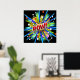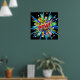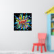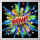 Uma brilhante explosão colorida de desenho animado com um desenho animado! bem no centro.