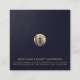 Deixe uma impressão duradoura com o nosso elegante cartão de visita de planejamento de propriedades em ouro quadrado. O fundo impressão de couro azul e o emblema do logotipo de ouro escovado com cantos arredondados oferecem um toque elegante, perfeito para planejadores imobiliários, advogados, conselheiros e qualquer profissional de negócios que queira deixar uma impressão duradoura. Conecte-se com confiança e mostre seus detalhes profissionais.