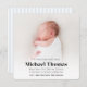 Esta design apresenta um simples minimalista para bebês, com um modelo de fotografia listrado azul, um azul claro e pastel, com estatísticas de natalidade anúncio de bebê, um modelo de layout de foto sangrado de cheio, um simples design mínimo minimalista, um anúncio de foto de uma menina fofa, uma fonte de tipografia de na moda, um design de layout de imagem de bebê simples, um anúncio de menino azul-claro e simplista