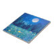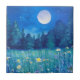 Azulejo cerâmico numa paisagem aquática de um campo de flores silvestres e uma floresta escura sob lua de cheio