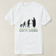 Vintage white destruiu camiseta com uma ilustração abstrato sobre a evolução humana e o texto "Praesis ut prosis, non ut imperes" na frente.
