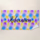 A reaxação é escrita em preto contra um bonito padrão de explosões de círculos espirituais em azul, amarelo e roxo. Mantenha o texto como está ou personalize. Design de arte original © TamiraZDesign.