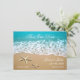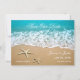 Este cartão moderno é ideal para anunciar um Casamento de Praia ou Destino. Ele mostra uma bela foto de uma praia com areia e dois estrelas-do-mar. Este cartão é ideal para um casamento na frente do oceano. Adicione seus próprios detalhes de evento.