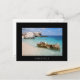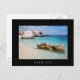 Cartão postal das grandes rochas na água e na areia da praia de Cala Mariolu, no Golfo de Orosei, na costa de Emerald, da ilha da Sardenha, no mar Mediterrâneo, em Itália, com uma fronteira negra e o texto: "Sardenha".