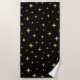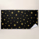 Douradas estrelas cintilantes sobre fundo negro, uma toalha elegante de praia