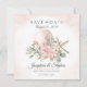 Linda floral, cor-de-rosa-rosa, com estrelas e dólar, casamento de praia de destino Salve o anúncio da data. Guardar a data sem fotos minimalista, inclui informações sobre a data do casamento, a cidade e o estado e o site do casamento. Muito espaço no verso para fotos de noivado e informações adicionais, se preferido.