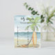 Bebê no Conselho! Chá de fraldas - perfeito para um chá de fraldas de verão. Tema da praia. A design de aquarela tem uma cena oceânica e de praia com surfboard, palmeira e chapéu de verão.