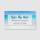 Um cartão de visita magnético com um casamento, salvar a data design com uma praia tropical arenosa. Um belo mar de turquesa à distância e águas cristalinas acariciando uma praia arenosa. Um céu azul brilhante no fundo.