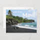 Cartão postal de uma praia de areia negra vulcânica no Parque Estadual de Waianapanapa, ao longo da famosa estrada para Hana, na ilha tropical de Maui, no Havaí, EUA, com o texto: "Love from Maui".