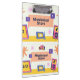 Uma prancheta útil para aqueles que querem tomar anotações fora de sua mesa.