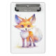 Uma miniprancheta muito bonita com uma ilustração de uma raposa bebê sorridente.