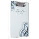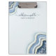 Adicione um toque de sofisticação aos seus materiais de escritório com esta prancheta de ágata geodo com brilho azul. Perfeita para profissionais de negócios, salões de beleza e espaços de trabalho criativos, esta prancheta personalizada é elegante e funcional, ideal para profissionais organizados que apreciam um toque de luxo no local de trabalho.
