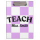 Mantenha-se elegante e organizado com esta adorável prancheta de professora xadrez roxa! Com um design moderno e sofisticado e letras ousadas “ENSINE”, esta prancheta pode ser totalmente personalizada com o seu nome, perfeita para adicionar um toque pessoal aos seus materiais de sala de aula. Durável, funcional e fofa, é ideal para uso diário, planejamento de aulas, correção de provas ou caminhar pela sala de aula com estilo. Um presente de apreciação perfeito para professores, professores estagiários ou volta às aulas!