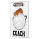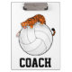 a prancheta prática e do divertimento imprimiu com um tigre que agacha-se em um voleibol. A parte dianteira da prancheta tem a palavra "treinador" e a parte traseira da prancheta tem do "o voleibol tigre" na parte traseira. Todas as palavras podem ser personalizadas para refletir nomes do jogador, números, ou nome da escola.