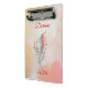 This personalized mini clipboard features a delicate hand-drawn feather intertwined with botanical details, set against a soft watercolor wash in warm peach and golden tones. The flowing script name at the top makes it a thoughtful and refined keepsake — perfect for journaling, planning, reflections, or creative writing.