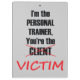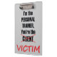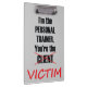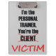 Eu sou o instrutor que pessoal você é a vítima - uma prancheta engraçada para um instrutor pessoal em um instrutor do gym ou do campo de treinos de novos recrutas. Por que não fazer seus clientes rir quando trabalharem o duro durante a formação?