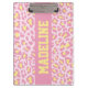 Prancheta do design do impressão do leopardo em cor-de-rosa e em amarelo com uma área que você pode facilmente personalizar com um nome ou o outro texto!