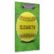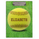 Bola feita sob encomenda do amarelo da prancheta da bola do softball com texto que marrom você pode personalizar com seu próprio nome. Presente perfeito ao jogador de softball