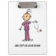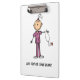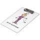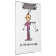 Uma grande prancheta para enfermeiras, características uma enfermeira fêmea de cabelo marrom em um uniforme roxo com estetoscópio e uma área que você pode personalizar ou deixar o vazio.