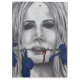 Este desenho original, feito com lápis e lápis da cor, é um retrato de uma mulher loura sedutor ou é um vampiro? Seus olhos do quarto tiram-no dentro. Há um sangue que funciona abaixo de seus lábios completos quando guardarar um rosa azul entre seus dentes. O desenho preto e branco é acentuado pelo sangue azul do rosa e do vermelho.