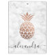 Belo design com abacaxi de rosa de cobre de cobre, abacaxi, fundo de mármore branco e letra elegante de caligrafia.