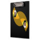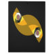Um abstrato de arte divertido dos olhos de uma coruja no escuro com sua cabeça torcida lateralmente.