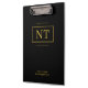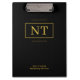 Uma prancheta ousada e elegante em preto e ouro com seu monograma personalizado. Perfeito para professores, profissionais ou marcas comerciais. Personalize com suas iniciais para uso diário.