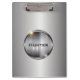 Design de aço elegante com um crachá brilhante 3D. Personalizar para preencher seu próprio nome ou palavra.