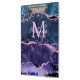 Esta área de transferência apresenta um fundo de mármore elegante e glamouroso azul-marinho e azul-lacrimogêneo com sotaques de brilho púrpura. O monograma combina o guião manuscrito e as fontes sans serif modernas para um aspecto elegante e sofisticado. Isso fará o presente ideal, pois ele pode ser personalizado com um nome e uma inicial. As sequências e a textura em apuros criam a mistura perfeita de chic e grunge.