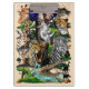 Animais Selvagens da savana africana reunidos para compor um belo fundo natural, com: girafa, rinocerontes, gazela, elefante, zebra, crocodilo, camaleão, leopardo, chita. Arte Gráfica Original Copyright BluedarkArt The ChameleonArt.