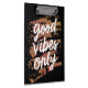Texto somente "boa vibração apenas" TYPOGRAPHY DESIGN, CORES BRANCAS, EM UMA FONTE DE SCRIPT DE BRUXO NEGRITO.
