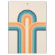 A ilustração com estilo retrorativo com decoração colorida (amarelo, azul, laranja, azul marinho, bege, turquesa) sobre fundo bege. Você pode adicionar seu nome/monograma para personalizar o item.