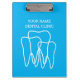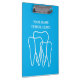 Área de transferência de acessórios de dentista, odontologia e de escritório dentário para planejamento de escritórios e outros horários de trabalho. Adicione seu próprio nome, cotação, nome comercial ou slogan da empresa. Impressão de logotipo de dente duplo de lado azul com modelo de tipografia moderna. Material personalizado para higienistas dentários, assistente, médico, armazém, compro, clínica, etc.
