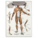 Imagem anatômica mostrando os músculos do corpo humano. Visão superior dos músculos superficiais. Mostra a flexão e a extensão do antebraço. Vista aproximada de uma seção transversal do músculo esquelético. Poster de reprodução do W. Gráficos de anatomia e fisiologia de Johnston por William Turner.