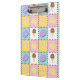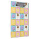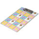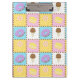 Satisfaça o seu doce dente com este padrão colorido que apresenta gostosões como um cone de sorvete de chocolate, uma rosquinha de chocolate fosco púrpura, um macarão amarelo-limão, e um pirulito rodoso, rosa e branco, separado por pedaços de chocolate e cercado por aspersão arco-íris em quatro quadrados brilhantemente abarrotados.