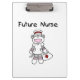 Uma prancheta de enfermeira fofa apresenta uma enfermeira de macacos-meias e o texto lê Future Nurse, excelente para estudantes de enfermagem!