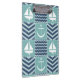 Um padrão inspirado na colcha de quadrados turquesas tempestuosos, decorados com um veleiro branco e âncora, e quadrados azuis marinhos profundos, acentuados com cavaleiros e ondas azuis paler, é acentuado pela costura branca para criar uma sensação náutica clássica.