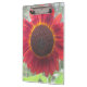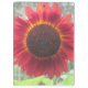 Esta prancheta apresenta um girassol vermelho ferrugem que quase brilha com o sol por trás.