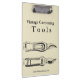 Clipboard profissional personalizável com a ilustração vintage das ferramentas. Perfeito para jardineiros e jardineiros profissionais. Você pode mudar facilmente a cor de fundo e adicionar texto clicando no botão personalizável. Produtos correspondentes: itens de escritório, casa, eletrônicos e muito mais...