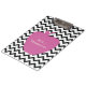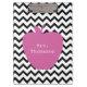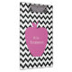 Uma área de transferência para professores com padrão de cóvron preto e branco. A frente apresenta uma ilustração de maçã rosa. Personalize com seu nome em maçã.