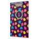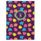 Rosas estilizados em néon brilhante cor-de-rosa, azul, amarelo e coral com folhas verdes neonatais são girados sobre um fundo roxo profundo para criar um padrão floral divertido. Personalize o monograma nesta área de transferência com a sua inicial para torná-lo exclusivo.
